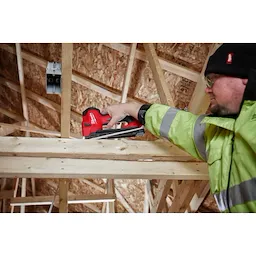 Our MILWAUKEE® M12™ Cable Stapler delivers unmatched stapling performance in the most compact battery-powered solution leading to a faster, more efficient rough-in process. Our compact, lightweight design provides users with access to tight stud bays and improved ergonomics when stapling overhead or during difficult-to-reach situations. Moveable cable guides ensure proper alignment and the coil-spring mechanism consistently sinks the staples to the appropriate depth when fastening NM-B Sheathed Cable (14, 12, 10 AWG) and low voltage cables, supporting peak stapling productivity. Only compatible with our 1" insulated staples (sold separately), the M12™ Cable Stapler gives the user the run-time needed to sink up to 1,200 staples on a fully charged M12™ CP2.0ah battery.