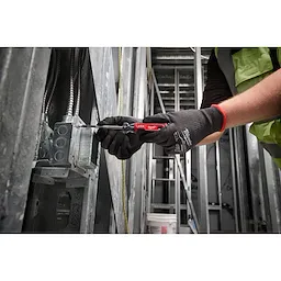 Our Milwaukee® Cushion Grip Screwdrivers (USA) are manufactured to give the professional the best-fitting screwdriver with max grip. Our screwdriver tips are custom machined to deliver a precise fit and reduce stripping during demanding fastening applications. For added confidence, the tips are laser etched to increase the gripping surface. Manufactured with high-strength boron-infused steel for increased hardness, our screwdrivers stand up to the demands of the site with ultimate durability and life. Providing increased versatility, select screwdrivers include a wrench-ready bolster for added torque and a knurled shank for precision control. Quick identification markings on the handle make it easy to identify screwdriver tip size and type, including Phillips, cabinet, ECX, slotted, and square. The demolition screwdrivers also include a hammer-ready strike cap. Our screwdrivers range in shank sizes from 3-inch to 10-inch. Our Milwaukee Cushion Grip Screwdrivers (USA) are made in the USA with best-in-class manufacturing technology and USA-sourced materials all backed by a complete Lifetime Guarantee.