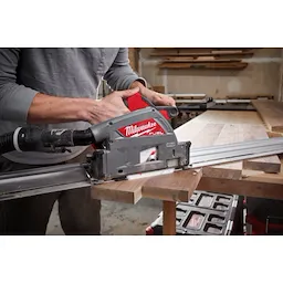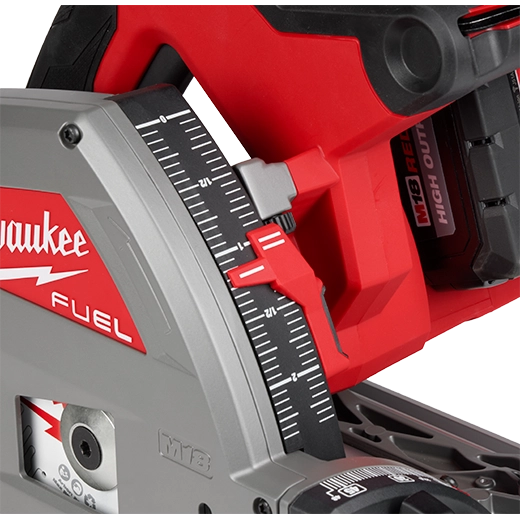 Designed for the professional carpenter and remodeler, the M18 FUEL™ 6-1/2” Plunge Track Saw from Milwaukee® delivers the Power to rip solid hardwoods, over 90% dust collection efficiency while providing the portability and precision users demand from a plunge saw. The Powerstate™ Brushless motor provides 5,600 RPM for finish quality and clean cuts. REDLINK PLUS™ intelligence ensures maximum performance and protection from overload, overheating, and over-discharge. The M18 REDLITHIUM™ HIGH OUTPUT™ XC6.0 battery delivers more cuts per charge and great durability than the competition. The saw features a variable speed dial allowing for setting the speed of your application. The smooth, pivoting plunge motion allows for precision plunge cuts with an accurate depth of cut.